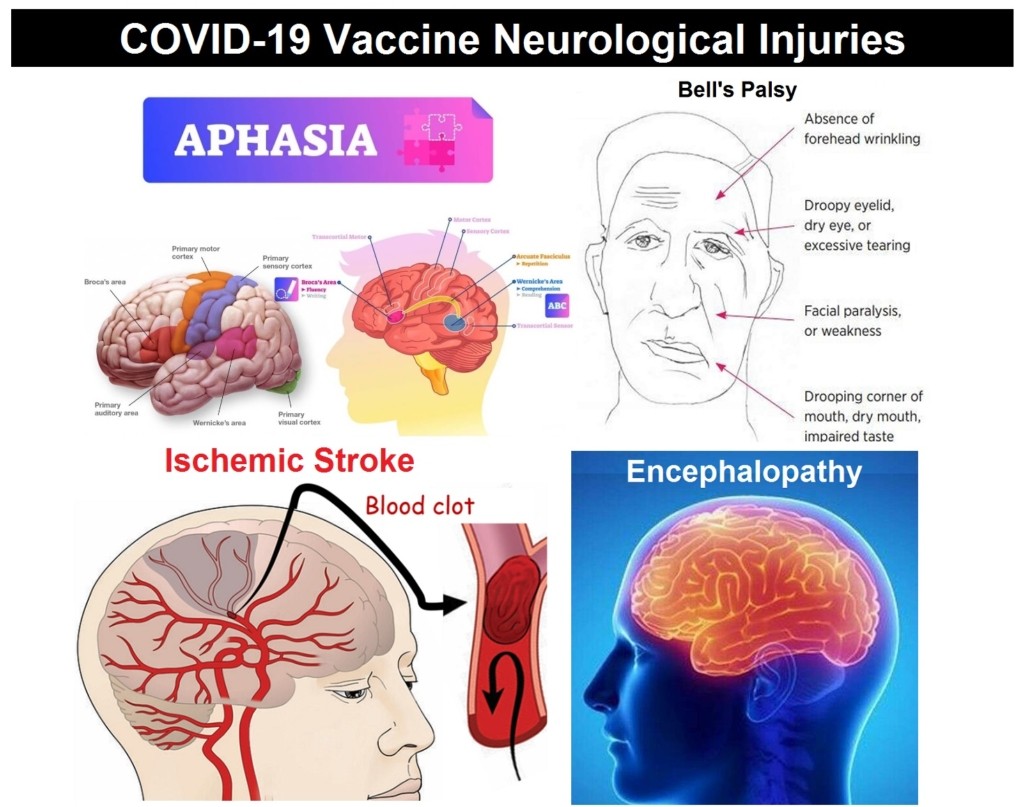 We will see, for example, that cases of Aphasia (the inability to comprehend or formulate language) increased 6,808% in 2021, cases of palsy, primarily Bell’s palsy (facial paralysis), increased 3,614% in 2021, cases of encephalopathy (disease of the brain) increased 3,128% in 2021, and cases of strokes, primarily ischaemic strokes (blood clots in the brain), increased by an incredible 101,863% following COVID-19 vaccines in 2021.