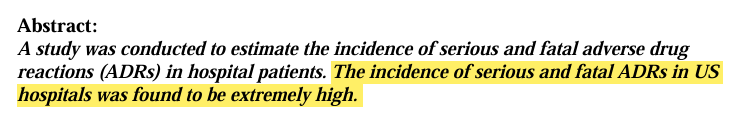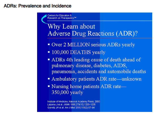 If true, then ADRs are the 4th leading cause of death—ahead of pulmonary disease, diabetes, AIDS, pneumonia, accidents, and automobile deaths.