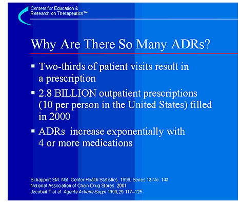 One estimate of the cost of drug-related morbidity and mortality is $136 billion annually,1 which is more than the total cost of cardiovascular or diabetic care in the United States. In addition, one out of 5 injuries or deaths per year to hospitalized patients may be as a result of ADRs.2