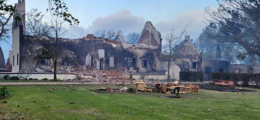 Stellenbosch. – The historic Blaauwklippen Manor House in Stellenbosch has burned down.