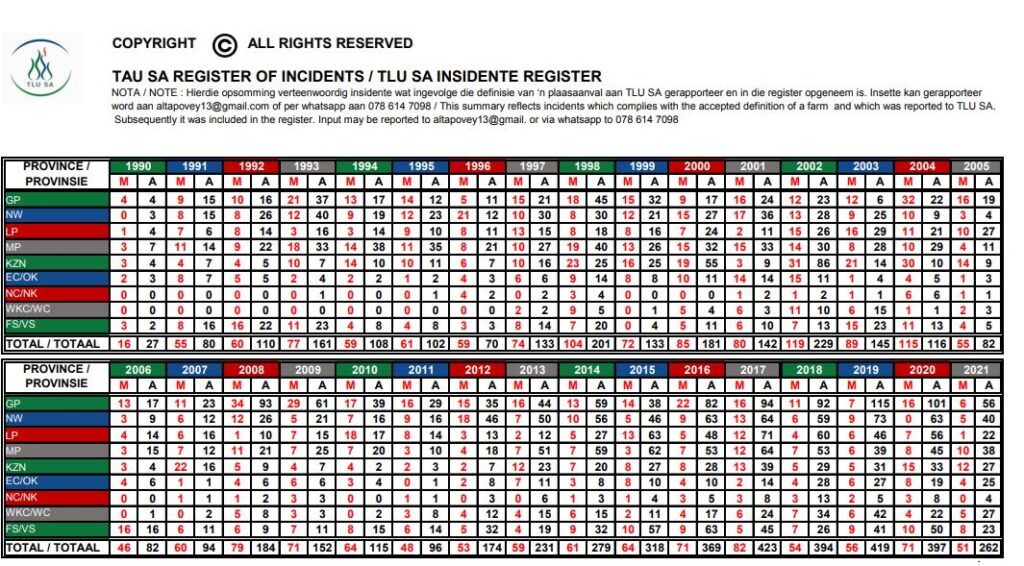 Home › Forums › ATTACKS AND MURDERS ON OUR SOUTH AFRICAN FARMERS. › TLU FARM ATTACKS AT MURDERS STATISTICS 1990-JAN 2024